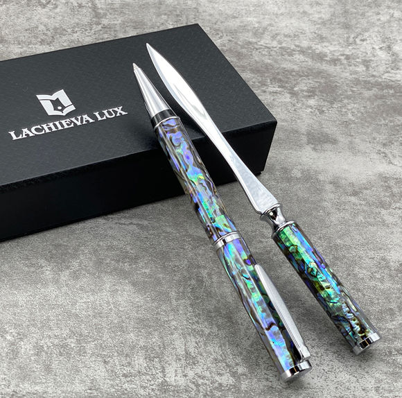 ★ WONDERFUL & IMPRESSIVE GIFT: LACHIEVA LUX Natural handcrafted abalone sea shell ballpoint pen and letter opener gift set is a true gift from the sea. They are made of natural abalone shells inlaid onto the metal base barrel and covered with several layers of nice quality resin. The pen is sleek, comfortable, and well-balanced in hand. The letter opener is ideal to open envelopes, and packages rapidly. It is an elegant and unique gift for your family, loved ones, and work partners.