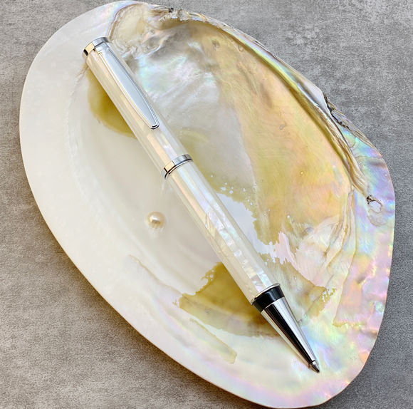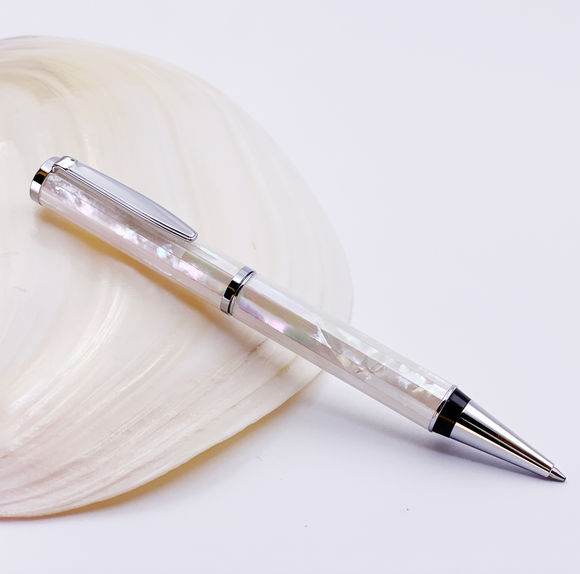 Stunning Mother of Pearl Ballpoint Pen with German-made Refill, Pearl White Shell Gift for Writing, Beautiful Pen for Men & Women