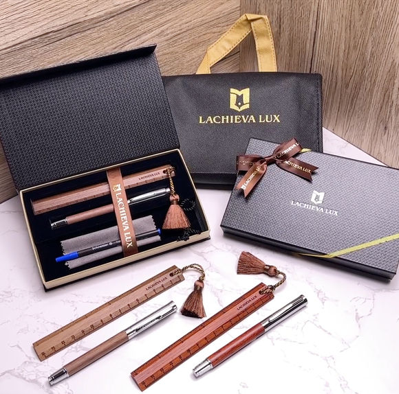 ★LACHIEVA LUX “Timbermate” Series: Discover the natural beauty of walnut wood with our Walnut Rollerball + Ruler/Bookmark. This handcrafted set shows unique walnut wood patterns. The pen is sleek and comfortable, and the ruler/bookmark is great for reading and marking pages. It's a nice gift for family, friends, and colleagues.